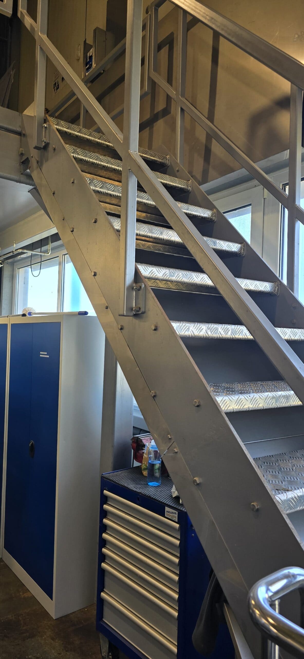 Ja, wir liefern Podeste inklusive Geländer, Treppen und optionalen Sicherheitsfeatures.