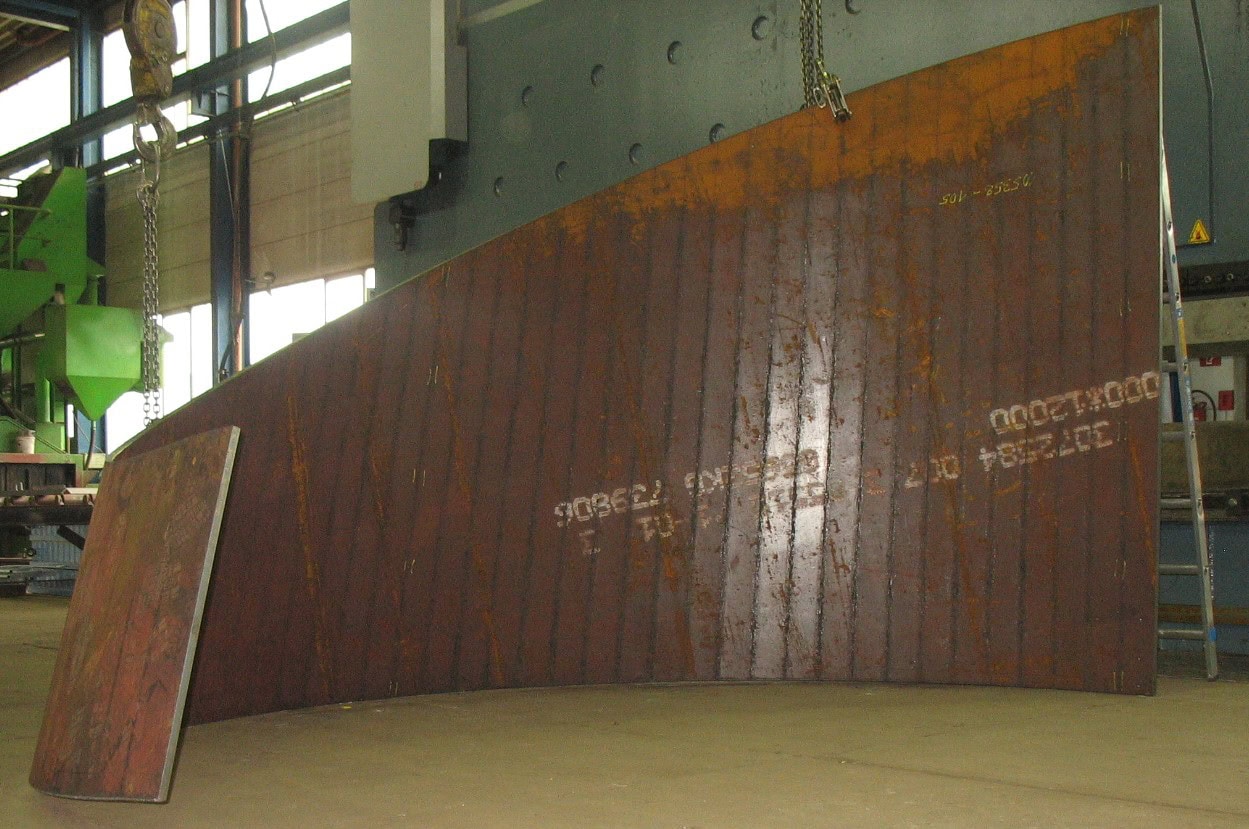 Wir kanten Bleche bis 8.500 mm Länge und 150 mm Dicke – ideal für große Stahlbauprojekte.